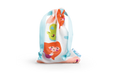 The Merula Cup mermaid is an intense royal blue with a matching cotton pouch made out of an especially soft, light-colored jersey printed with large mermaids and other colorful ocean creatures. A pale blue ribbon is used to close the pouch and hang it up to store the cup in a safe and airy spot between your periods.